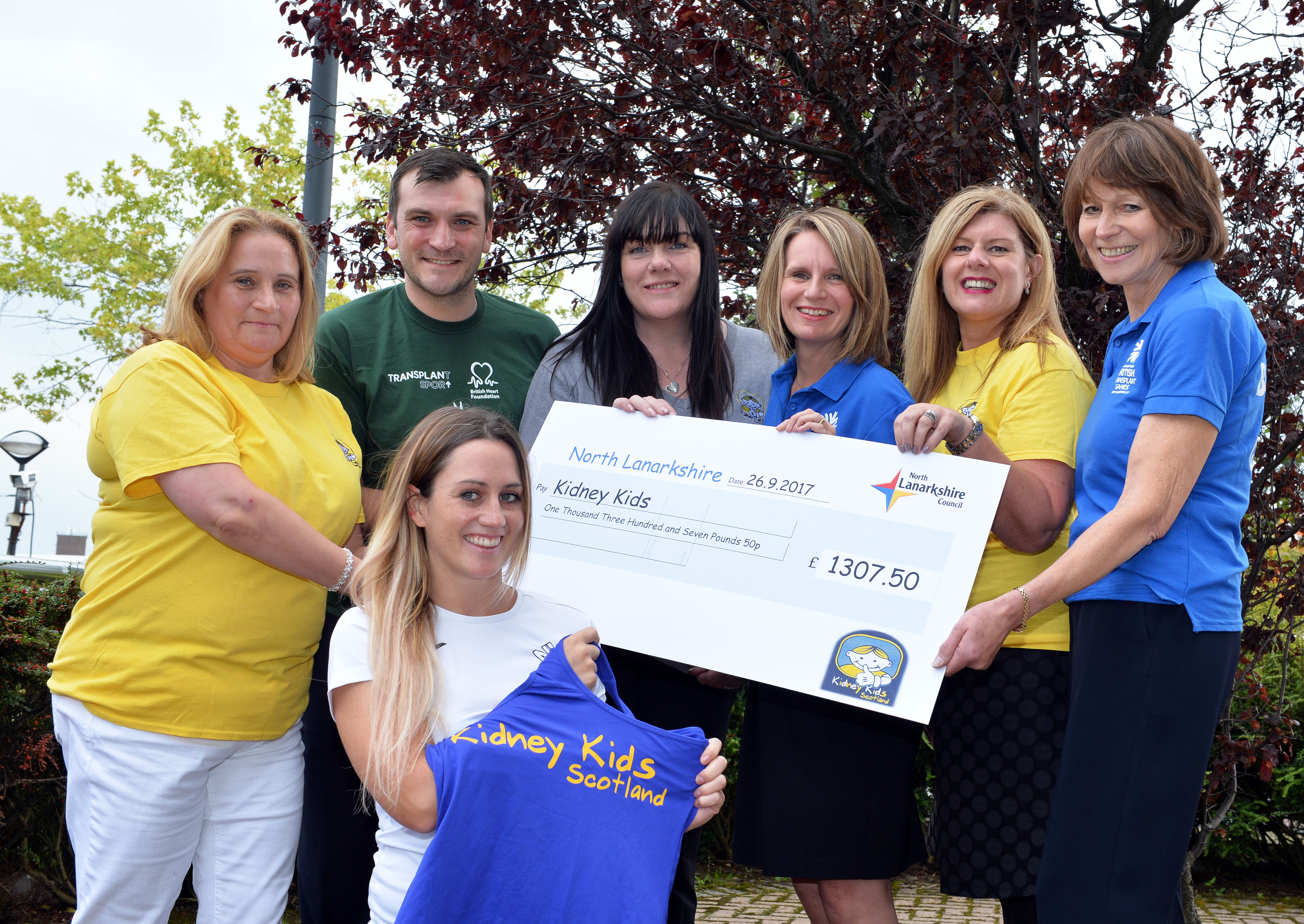 North Lanarkshire Council have presented Kidney Kids Scotland with a cheque for over £1300, raised during this year's Westfield Health British Transplant Games.
