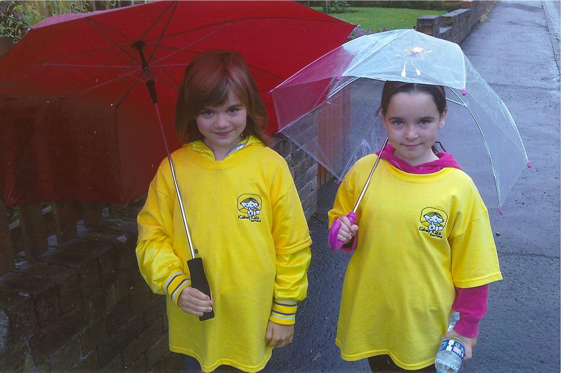 My name is Woktoria and my friend's name is Megan. We are 8 years old. On the 2nd of August we did a walk for Kidney Kids. We raised £120. We were supposed to walk the Forth Road Bridge, but because the weather was bad we did a walk around Armadale where we live. The walk was a mile in length and we had to do it with our umbrellas because of the rain. It was cold as well.