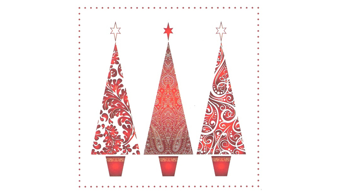3 Red Trees - Size 150 x 150 - 10 cards same design - £4.70. Greeting inside this cards reads - Warmest Wishes for Christmas and the New Year.The price listed includes postage and packaging.