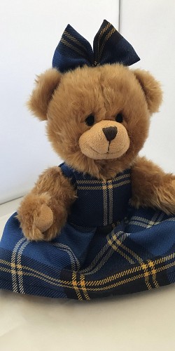 Meet Betsie Bear a traditional "Ronnie Hek" bear wearing our very own Kidney Kid Scotland Tartan. Size 12 Inches High.