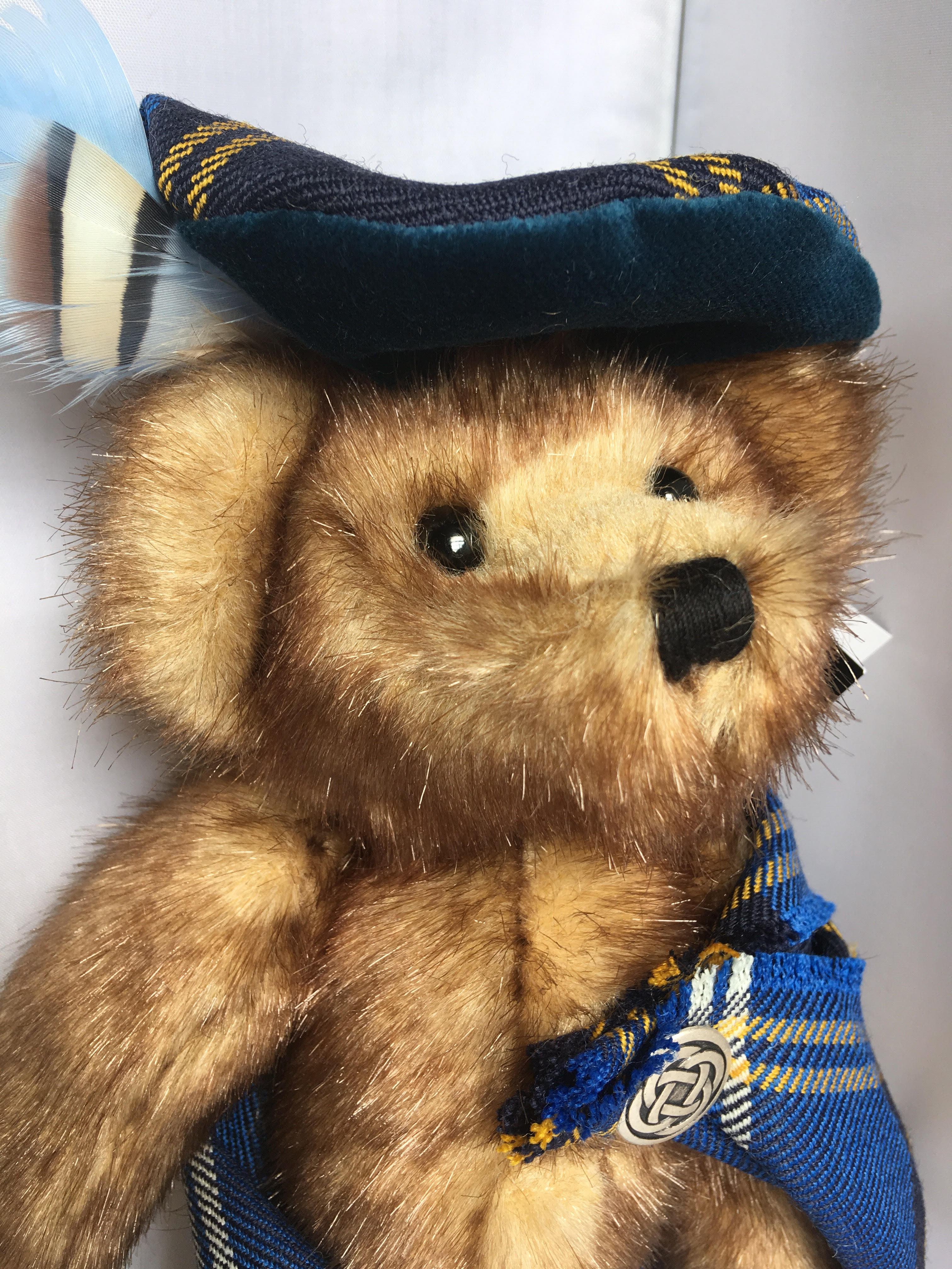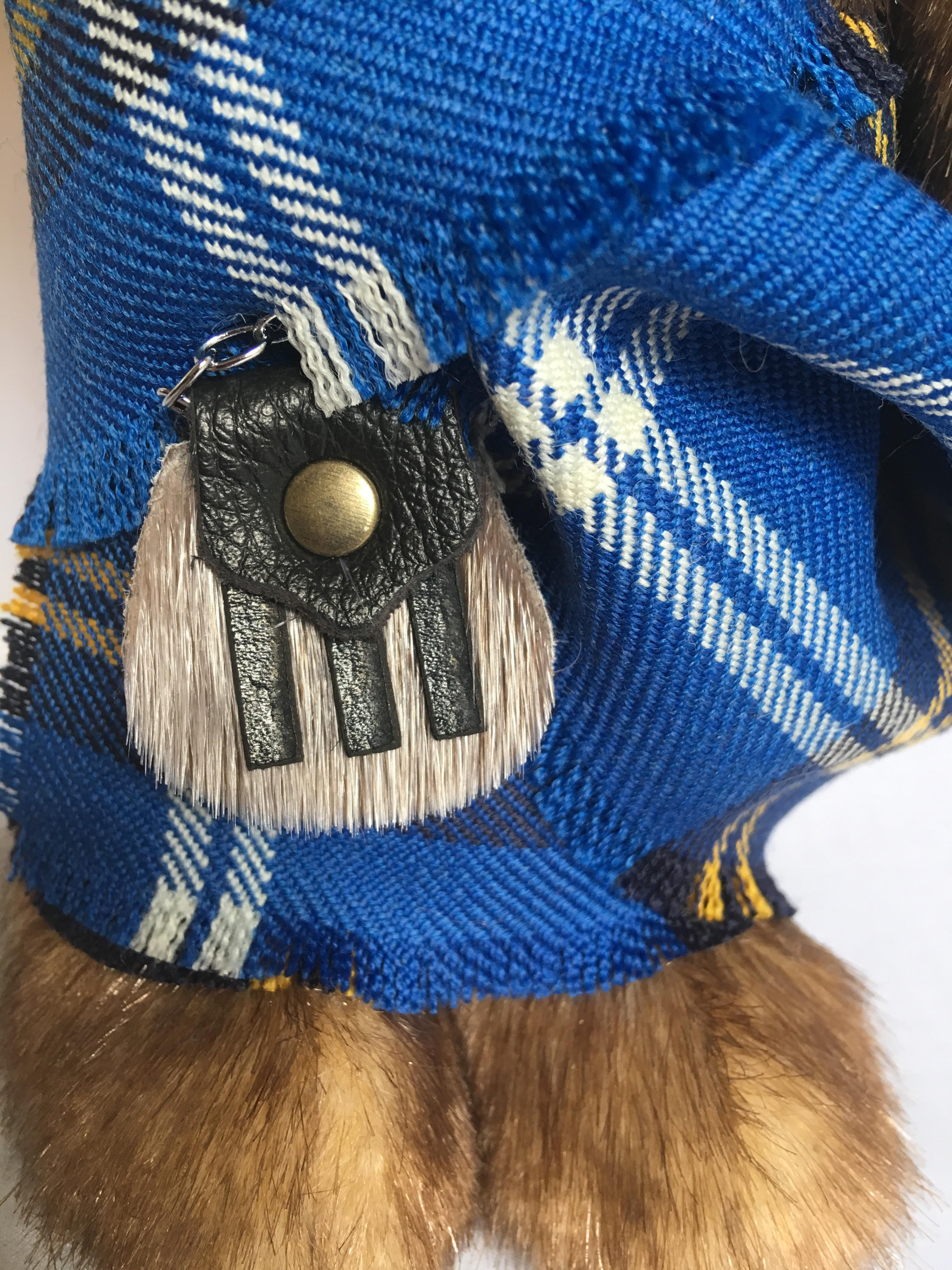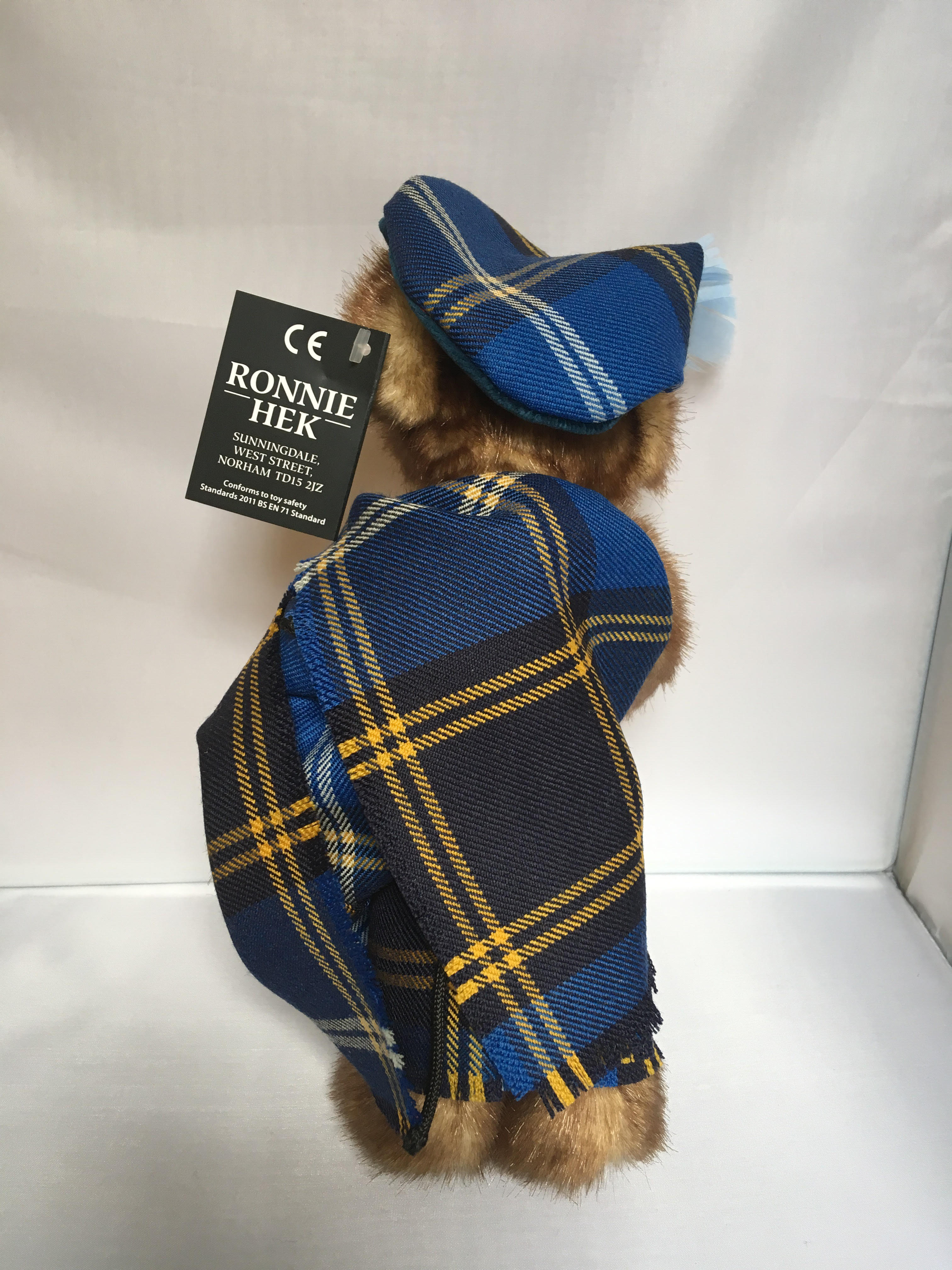 Meet Braveheart Bobby Bear a traditional "Ronnie Hek" bear wearing our very own Kidney Kid Scotland Tartan. Size 10 Inches High.