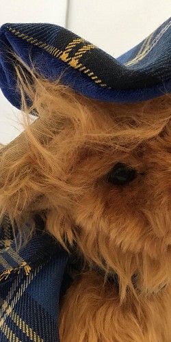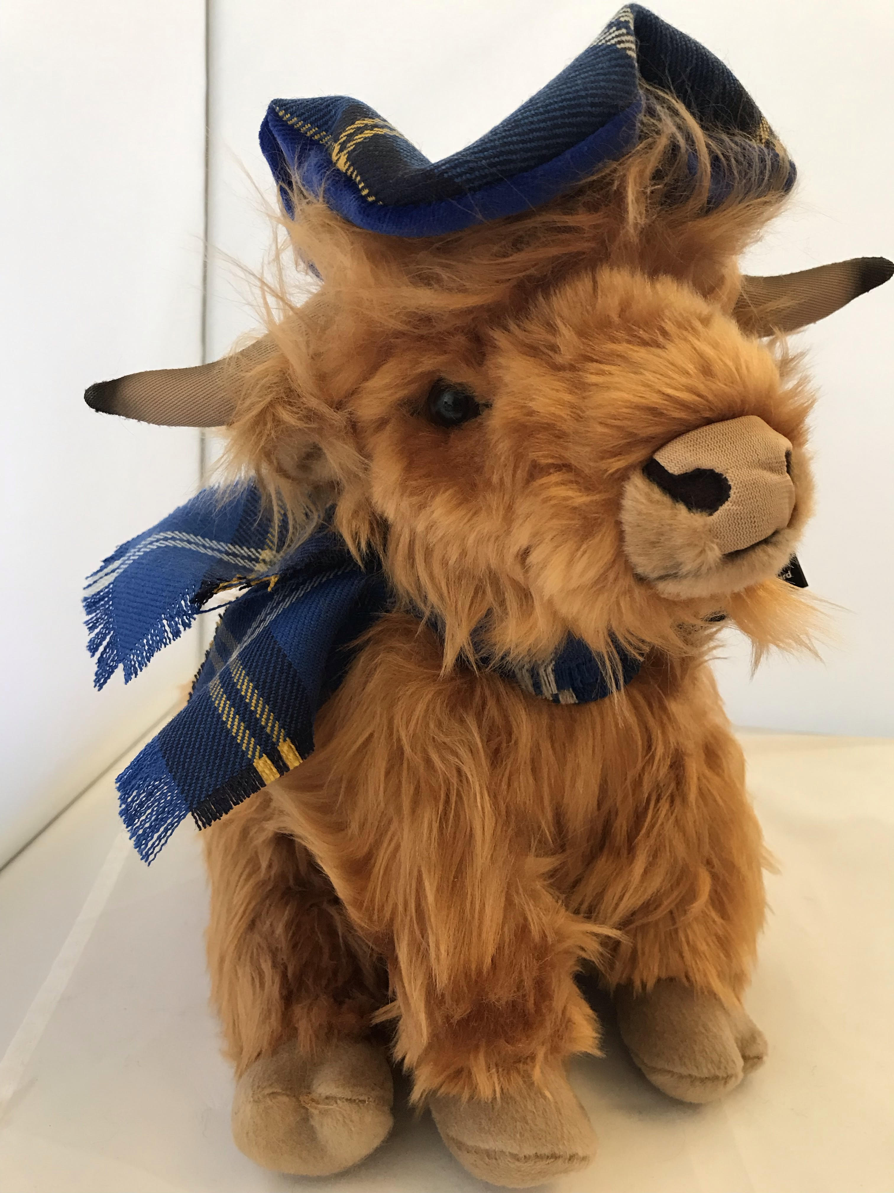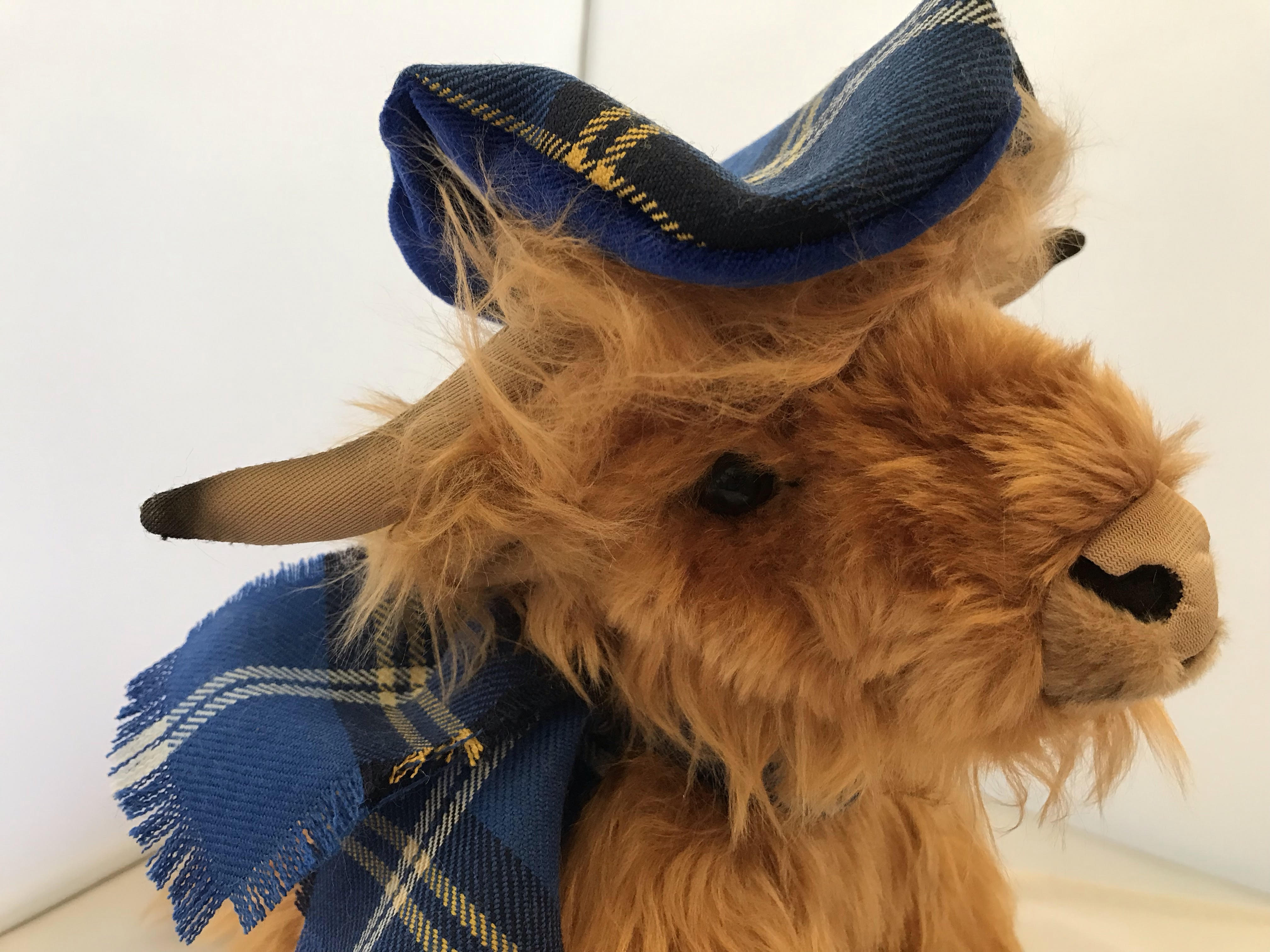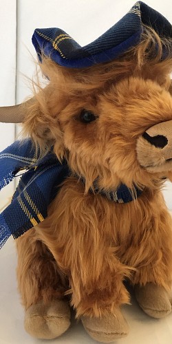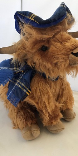 Meet Hamish our Large Highland Cow a traditional made by "Ronnie Hek" wearing our very own Kidney Kid Scotland Tartan. Size 10 Inches High.