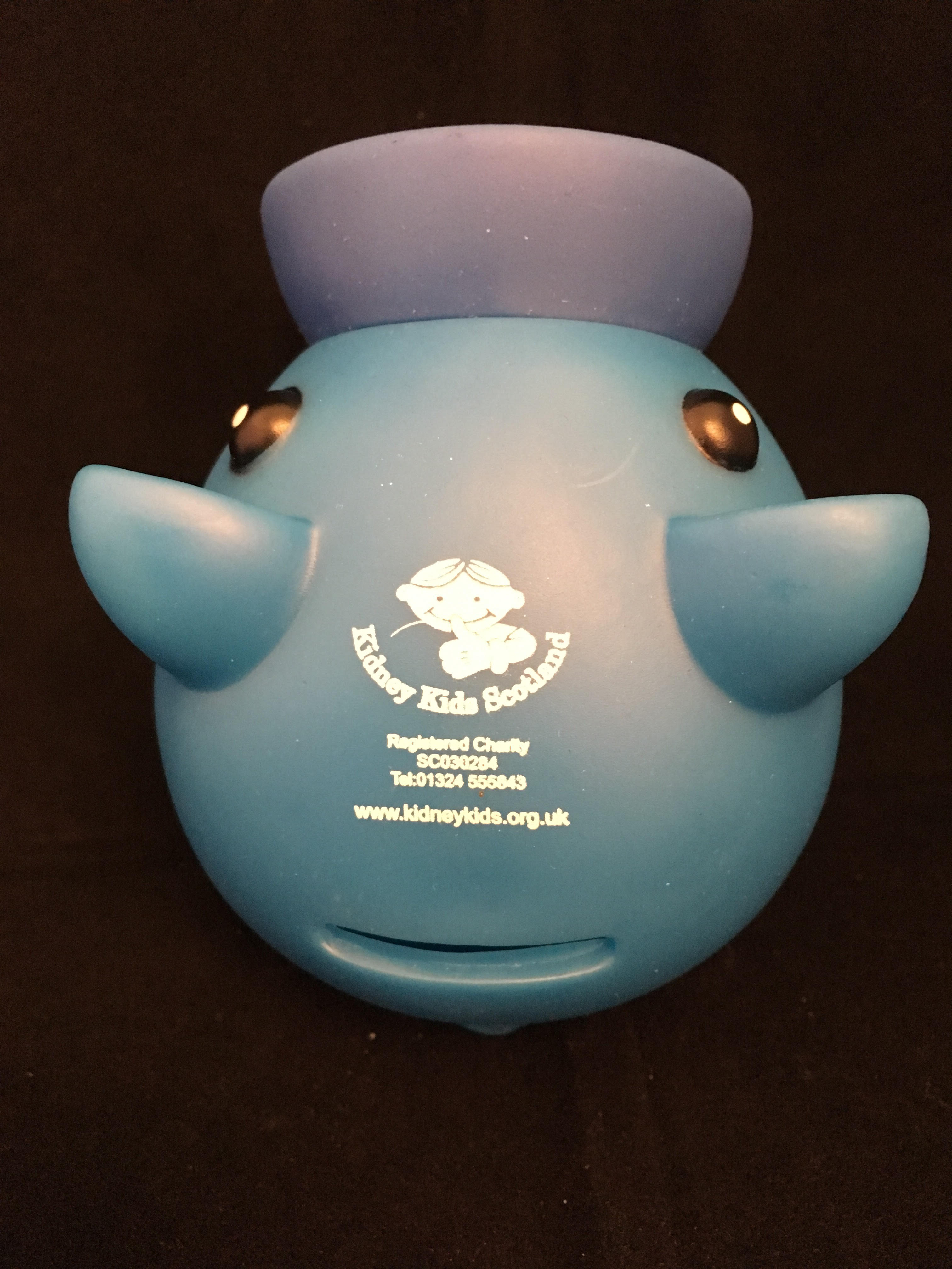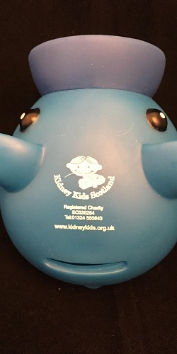 This very cute little piggy bank is an ideal gift or keep sake. Printed with the Kidney Kid Scotland logo.